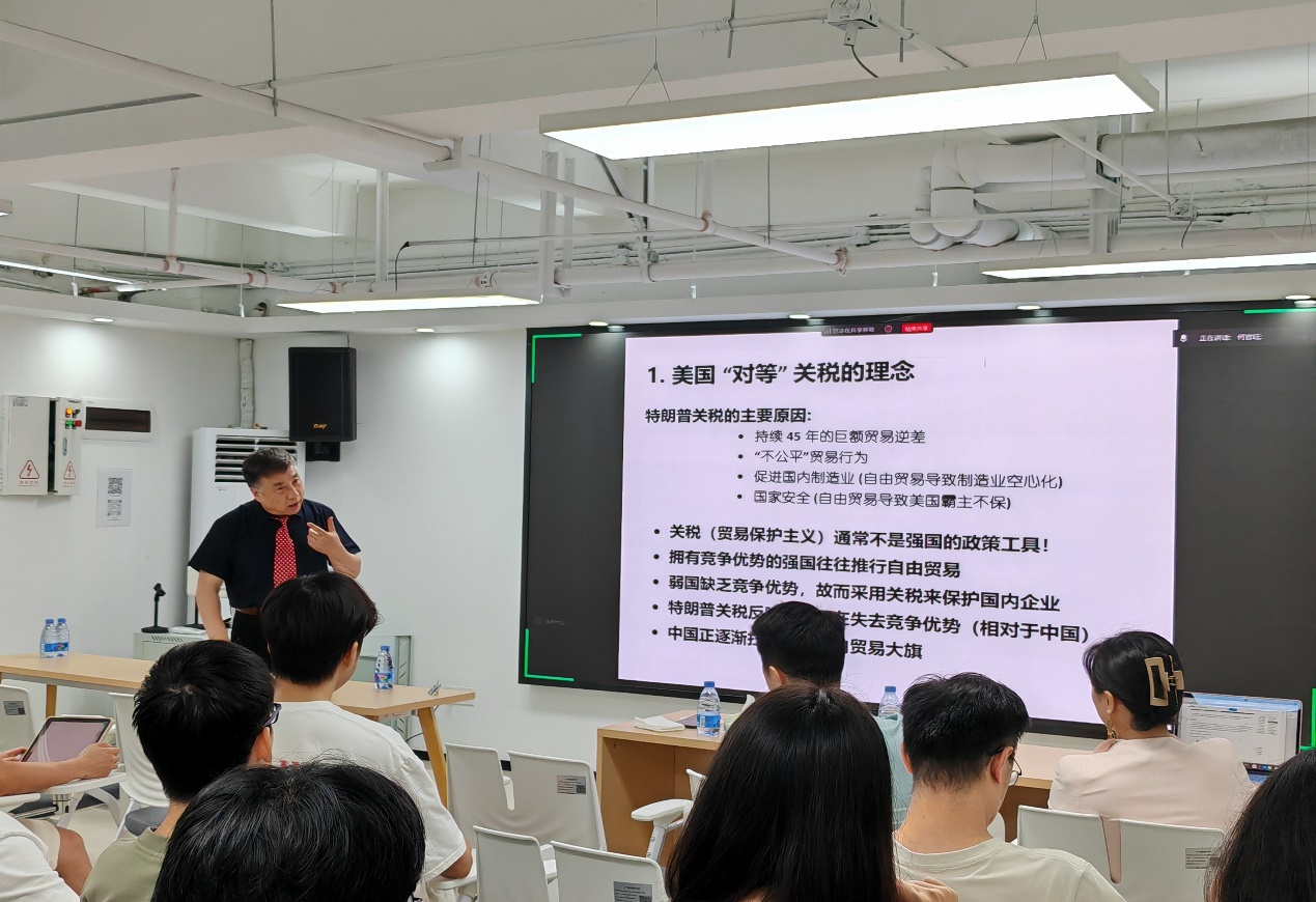 讲座现场气氛热烈,师生互动频繁,激发了同学们的积极思考。张教授通过详实的数据与深刻的分析,系统阐述了中美关税政策的博弈逻辑及其对中国企业创新创业的挑战与机遇,帮助同学们更加全面、深入地理解中国企业如何在全球关税环境下发挥创新能力、提升竞争优势,为未来参与国际经济治理和企业战略决策提供了新的视角与理论支持。